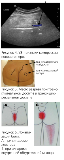 Хирургическое лечение проводится только при доказанной компрессии полового нерва, резистентной к медикаментозной терапии. В настоящее время используют трансглютеальный и трансшиоректальный доступы (рисунок 5).
