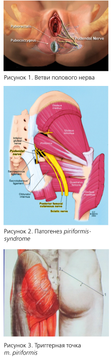 Диагностика нейропатии ПН основана на указанных выше Нантских критериях, кроме того, необходимо пальпировать триггерные точки m. piriformis и m. obturatorius для диагностики миофасциальных синдромов (рисунок 3).